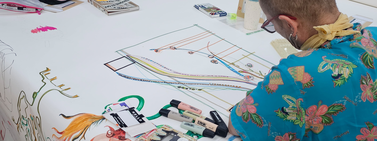 A relaxed, creative space for artists to connect, make art and share ideas. Free, in-person sessions led by Outside In artists in the Clore Garden Studio.