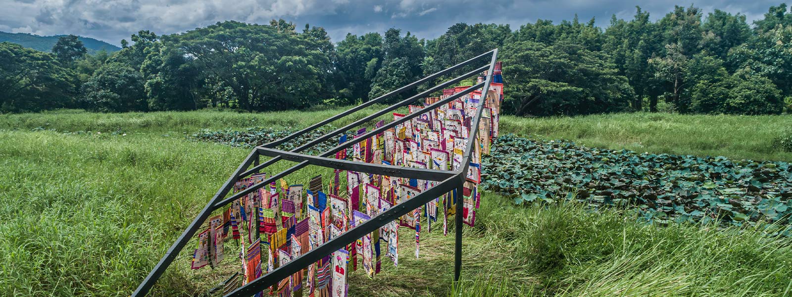 Exploring ideas of home and belonging, this collaborative embroidery piece creates an ongoing dialogue between the artist, the community of Koung Jor Shan Refugee Camp and viewers around the world.
